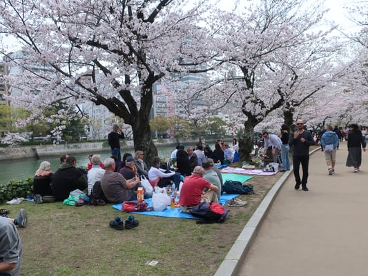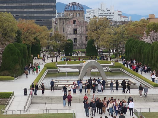 Vormittag Hiroshimas Geschichte: Friedenspark und Friedensmuseum. Bei passendem Wetter machen wir ein ruhiges Picknick unter Kirschbäumen.