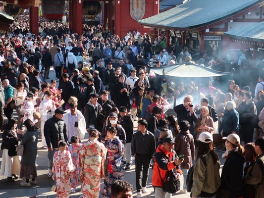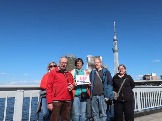 Nachmittag Bummel durch das neue und alte Viertel Asakusa. Blick auf Skytree, ein Gebet am Tempel Sensô-ji, einem Wahrzeichen Tokios.