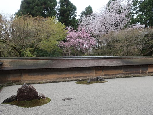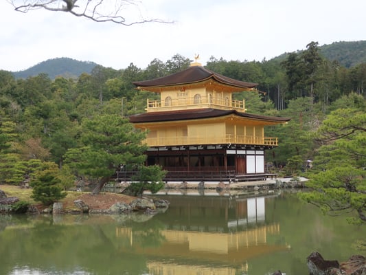Vormittag Zen-Tempel Ryoanji mit berühmten Steingarten und Kinkakuji (Goldener Pavillon). Mit Linienbus und U-Bahn zur Mittagspause in der Innenstadt.