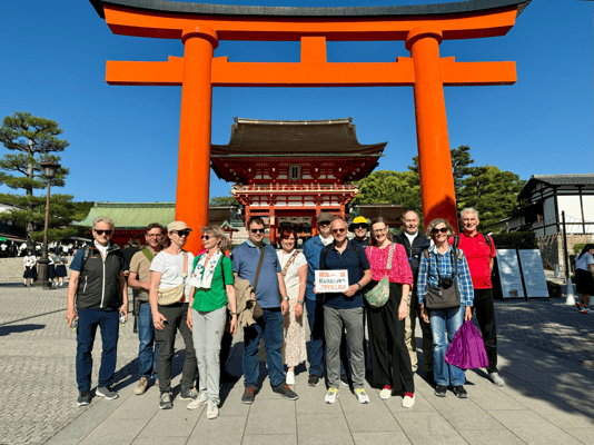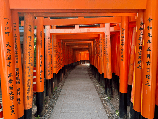 Nach einer Mittagspause wartet der berühmte Shintô-Schrein Fushimi Inari mit seinen tausenden Torii (rote Tore). Den Kontrastpunkt stellt zum Abschluss der Kyoto Hauptbahnhof mit seiner noch immer kontroversen Architektur dar. Danach geht es wieder mit der Bahn nach Osaka.