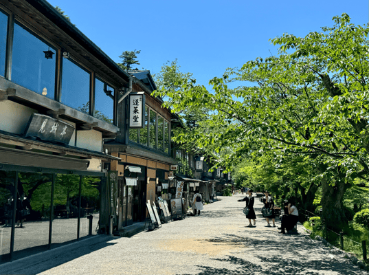 Wie eine kleine Zeitreise - aber zu Fuß! So fühlt sich unser heutiges Tagesprogramm an. Wir starten in der riesigen Burganlage mit originalgetreuen, wunderschönen Wiederaufbauten. Der angeschlossene Kenroku'en gilt als einer der schönsten Landschaftsgärten Japans, besonders im Frühling. Nach einer individuellen Stärkung begeben wir uns in die frühe Neuzeit: Das "Teeviertel" Higashi Chayamachi war einst das Geisha-Viertel. Die kleinen Gassen mit den traditionellen, dezenten Ladenfronten erinnern noch heute daran. Das ehemalige Geisha Haus Shima bietet Einblicke in den Lebensstil der Damen.