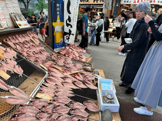 Morgenstund hat Fisch im Mund... könnte meinen, wer an diesem freien Tag einen Besuch auf dem verwinkelten Ômichô Fischmarkt genießt. Nur wenige Gehminuten vom Hotel liegen die überdachten Marktstraßen, wo von Seeigel bis Seetang alles angeboten wird, was aus dem Salzwasser kommt. Und noch viel mehr! Danach bietet sich eine Erkundung des Nishi Chayamachi an, dem zweiten Altstadt-Viertel in Kanazawa. Dort befindet sich auch das kleine, aber kurzweilige Ninja Museum mit einer vielzahl an Anschauungsmaterial zur tatsächlichen Arbeit der "Shinobi", die eher Spione als Killer waren.