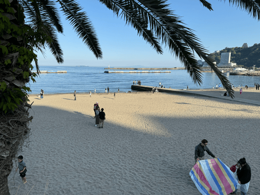 Mit der S-Bahn verlassen wir in knapp 3 Stunden den Großraum Tokio. Und kurz nachdem sich das Meer zum ersten Mal durchs Zugfenster blicken lässt, sind wir auch schon angekommen. Atami ist eine kleine, am Hang gelegene Stadt mit vielen Souvenir- und Lebensmittelgeschäften, Onsen Bädern, Hotels und einem großen Strand. Ihr maritimer Charme erschließt sich am besten beim Erkunden der kleinen Straßen auf eigene Faust.