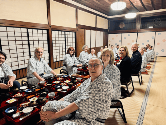 Mit dem Shinkansen sind es nur 90 Minuten bis Ueda, wo wir nach einer kurzen Mittagspause vom Hotelbus in 30 Minuten zu unserer Unterkunft im Dorf Aokimura auf etwa 800 m gebracht werden. Im Tazawa-Onsen werden wir zwei Nächte typisch japanischen Urlaub genießen. Das bedeutet: Onsen-Bad, gemütliche Tatami-Zimmer und ein üppiges Menü aus köstlichen, lokalen Speisen. Ausreichend Flüssigkeit (Bier und Sake) und eine umfangreiche Karaoke Maschine machen das Japan-Erlebnis perfekt.