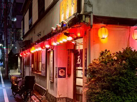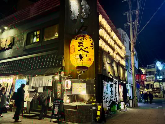 Am Abend locken in Juso unzählige Restaurants und Imbisse mit köstlichen Speisen: Sushi, Ramen oder das hier beheimatete Takoyaki (herzhafte Teigbällchen mit einem Stück Oktopus).