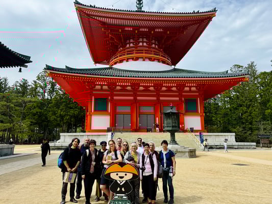 Morgens verlassen wir die Großstadt Osaka und begeben uns in dünn besiedelte, bewaldete Berglandschaften. Nach insgesamt etwa 3 Stunden Fahrt sind wir auf dem Bergplateau des Koyasan auf rund 1000 m angekommen. Im Zentrum des japanischen Shingon-Buddhismus erwarten uns imposante Tempelanlagen wie der Kongobuji oder Kompondaito, majestätische Zypressenwälder und der 1200 Jahre alte Friedhof Ôkuno'in, auf dem Feldherren, Unternehmer, Künstler und andere einflussreichen Personen aller Jahrhunderte ihre Ruhe fanden.
