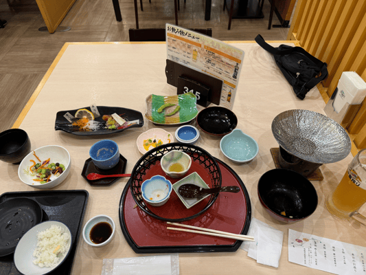 Mit dem Bummelzug ist eine gute Stunde bis Hakui, wo wir vom Hotelbus in wenigen Minuten zum Ferienhotel gebracht werden. Umgeben vom iefernbäumen liegt das Kyukamura Noto Chirihama zwischen einer Schnellstraße und der lebhaften Küste der Noto Halbinsel (2 Minuten zu Fuß). Hier werden wir zwei Nächte typisch japanischen Urlaub genießen. Das bedeutet Entspannung im hauseigenen Onsen-Bad (mit Sauna) und ein köstliches Menü, vor allem aus dem Meer. Und das ein oder andere Getränk dazu darf natürlich nicht fehlen!