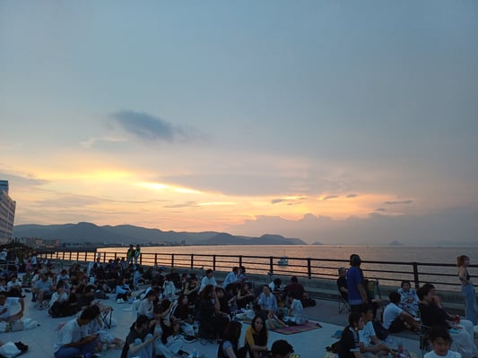 Am Abend sollte man sich rechtzeitig einen guten Platz an der Promenade in Takamatsu sichern, um das Feuerwerk zu bestaunen. Mindestens genauso erstaunlich ist, wie geordnet die Massen nach dem Ende wieder den Rückzug antreten.
