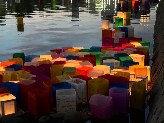 Am Abend findet das Laternenfest am Fluss statt. Friedenswünsche aus der ganzen Welt erleuchten dann das abendliche Dunkel.