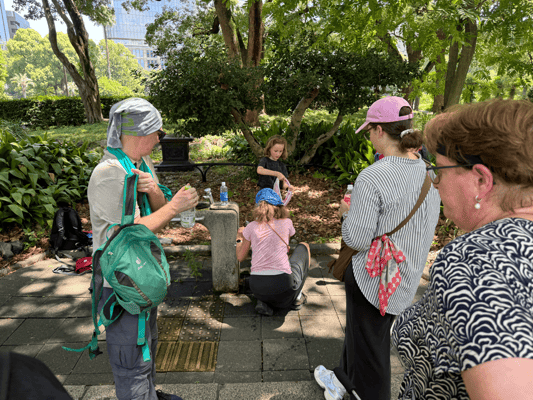 taisha für einen guten Aufstieg. Nach einer Erfrischung für unsere Füße im eiskalten Fuji-Wasser des Kanda Flusses kann jeder alles Nötige für die morgige Besteigung in