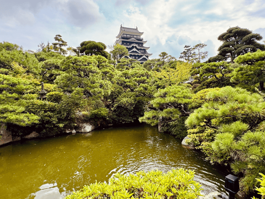 Mit der Bahn fahren wir über eine der längsten Hängebrücken der Welt bis nach Shikoku, der kleinsten der vier Hauptinseln Japans. In Takamatsu angekommen besuchen wir den Landschaftsgarten Ritsurin Koen. Warum eigentlich "Landschaftsgarten"? Weil die imposante, penibel gepflegte Anlage den Eindruck einer viel größeren Landschaft vermitteln soll: Seen, Berge und Flüsse... und unter der schwungvoll gebogenen Brücke paddeln ein paar Boote hindurch. Auch Koi-Karpfen, Schildkröten und Störche leben in dieser von Menschen gemachten Oase am Stadtrand von Takamatsu.