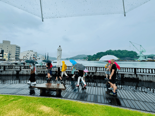 Alle kennen die Zeichentrickfilme vom japanischen Studio Ghibli. Aber nicht jeder war schon mal in Tomono'ura, dem Hafenstädtchen, in dem Hayao Miyazaki mehrere Monate gelebt hat, um sich auf seinen Film "Ponyo" vorzubereiten. Und tatsächlich, die pittoresken Ansichten des Seto-Binnemeers könnten direkt einem Kunstwerk entsprungen sein. Mit dem Regionalbus sind wir in 30 Minuten in dem Örtchen mit zahlreichen alten Gassen, Häusern und Tempeln. Mit einer kleinen Fähre setzen wir über auf die Insel Sensujima mit idyllisch gelegenen Badestränden und der Möglichkeit einer kleinen Bergwanderung.