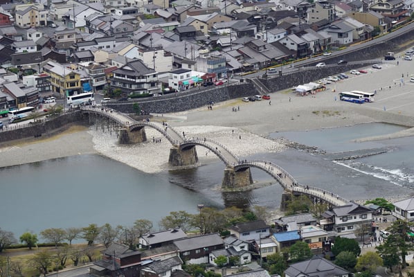 Mit der Bahn, vorbei an Miyajima, besuchen wir heute Iwakuni. Vom Bahnhof bringt uns ein Bus zur berühmten Kintai-Brücke. Im Kikko-Park befindet sich ein kleines Museum zu den weißen Schlangen, die den Geist der Göttin Benzaiten verkörpern und sehr verehrt werden. Gleich neben dem Museum befindet sich die Seilbahn, die uns zur Burg Iwakuni bringt.