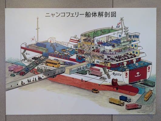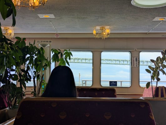 Und das war nur der Vormittag! Danach begeben wir uns gemeinsam mit Taxen zum Hafen, wo wir mit der großen Jumbo Ferry etwa 4,5 Stunden durch die Inlandsee bis nach Kobe und schließlich mit der Bahn weitere 30 Minuten nach Osaka reisen.