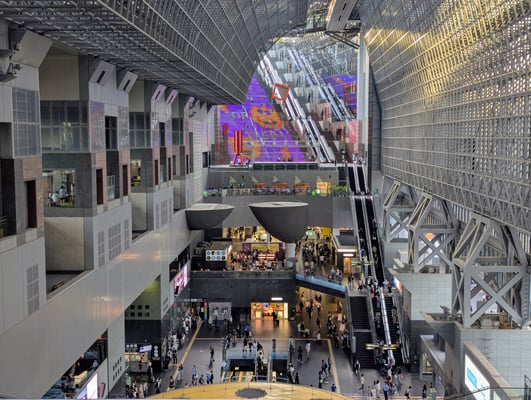 Nach einer Mittagspause wartet der berühmte Shintô-Schrein Fushimi Inari mit seinen tausenden Torii (rote Tore). Den Kontrastpunkt stellt zum Abschluss der Kyoto Hauptbahnhof mit seinem noch immer kontroversem Design dar. Danach geht es wieder mit der Bahn nach Osaka.