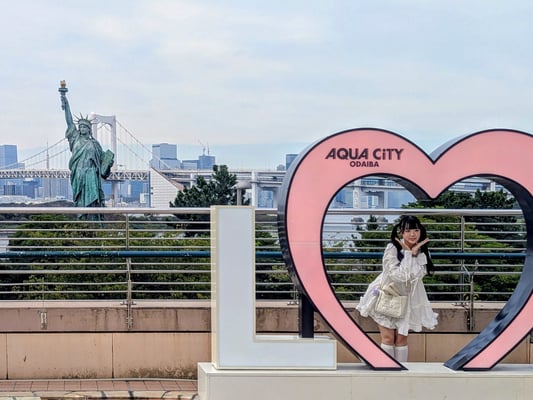 z. B. kleiner Strand mit Blick auf Tokios Skyline