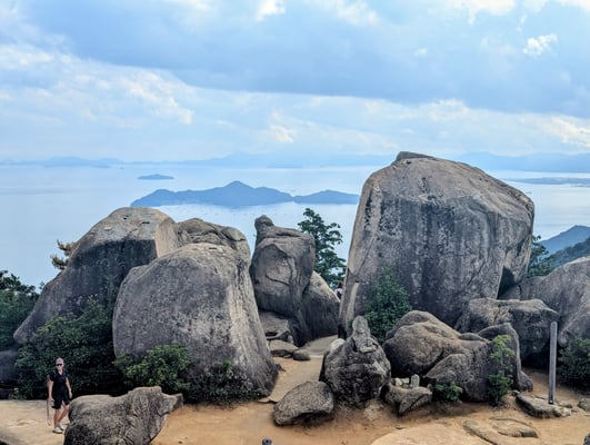 Wer anschließend Spaß an Bewegung hat, kann den Berg Misen erklimmen. Nach etwa 90 Minuten durchaus anstrengender Steigung wird man (bei gutem Wetter) mit einem atemberaubendem Ausblick auf die Japanische Inlandsee belohnt. Bei schlechterem Ausblick bleibt einem das Gefühl des Erfolgs und der Appetit auf ein leckers Abendessen, z. B. Okonomiyaki im Hiroshima Style.