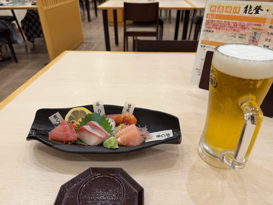 Mit Express und Shinkansen sind es etwa 4 Stunden bis Hakui, wo wir vom Hotelbus in wenigen Minuten zum Ferienhotel gebracht werden. Umgeben von Kiefernbäumen liegt das Kyukamura Noto Chirihama zwischen einer Schnellstraße und der lebhaften Küste der Noto Halbinsel (2 Minuten zu Fuß). Hier werden wir zwei Nächte typisch japanischen Urlaub genießen. Das bedeutet Entspannung im hauseigenen Onsen-Bad (mit Sauna) und ein köstliches Menü, vor allem aus dem Meer. Und das ein oder andere Getränk dazu darf natürlich nicht fehlen!