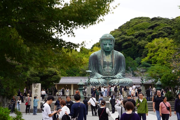 Das krönende Finale einer einmaligen Japanreise ist unser Trip nach Kamakura. Nach etwa 2 Stunden Anreise mit der Bahn lockt die liebliche Kleinstadt an der Pazifikküste mit einer Fülle an religiösen Sehenswürdigeiten, der wir ehrlich gesagt kaum gerecht werden können. Unsere Highlights sind der Große Kamakura Buddha und die vielleicht schönste Tempelanlage Japans, der Hasedera. Nach einem kurzen Spaziergang ans Meer geht es zur verlängerten Mittagspause in die kleine, aber sehr lebendige Innenstadt mit dem großen Hachimangû Schrein im Zentrum.
