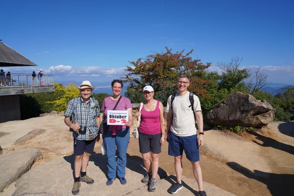 Wer anschließend Spaß an Bewegung hat, kann den Berg Misen erklimmen. Nach etwa 90 Minuten durchaus anstrengender Steigung wird man (bei gutem Wetter) mit einem atemberaubendem Ausblick auf die Japanische Inlandsee belohnt. Bei schlechterem Ausblick bleibt einem das Gefühl des Erfolgs und der Appetit auf ein leckers Abendessen, z. B. Okonomiyaki im Hiroshima Style.