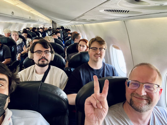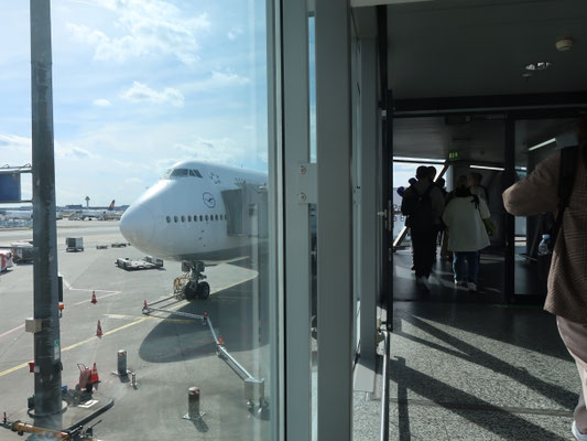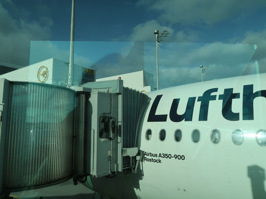 Es geht los... Wir treffen uns am Gate zum Flug LH 714 in München. Wir fliegen Economy Class. Die Flugzeit ist 12:35 bis 08:00, also etwa 13 Stunden. An Bord werden zwei warme Mahlzeiten serviert und es stehen ausreichend Snacks und Getränke zur Auswahl. In Tokio sammeln wir uns in der Ankunftslobby.