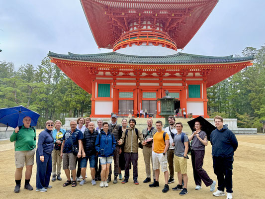 dem Bergplateau des Koyasan auf rund 1000 m angekommen. Im Zentrum des japanischen Shingon-Buddhismus erwarten uns imposante Tempelanlagen wie