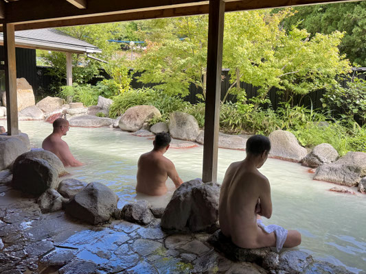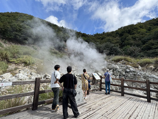 Mit Bus und Bahn reisen wir in gut 2 Stunden zur "Hölle" von Unzen. Das Areal "Jigoku", voller kleiner Geysire und Schwefelquellen, gibt einem das Gefühl, auf einem fremden Planeten oder eben in der Hölle zu sein. Ein kurzer Wanderweg durch den Wald führt uns zu einem wundervollen Schwefel Onsen direkt am Waldrand. Am Nachmittag bestaunen wir die imposante Burg Shimabara, bevor es mit der Bahn wieder nach Nagasaki geht.