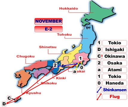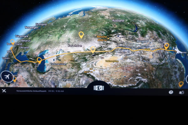 Es geht los... Wir treffen uns am Gate zum Flug LH 716 in Frankfurt. Wir fliegen Economy Class. Die Flugzeit ist 14:00 bis 09:45 also etwa 13 Stunden. An Bord werden zwei warme Mahlzeiten serviert und es stehen ausreichend Snacks und Getränke zur Auswahl. In Tokio sammeln wir uns in der Ankunftslobby.