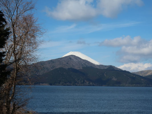 In nur 15 Minuten gelangen wir mit der Regionalbahn nach Atami. Dort deponieren wir unser kleines Gepäck in Schließfächern. Anschließend geht es mit dem Bus über Serpentinen hinauf nach Hakone. Wir machen einen Spaziergang durch den Fuji-Hakone-Izu-Nationalpark entlang der ehemalige Handelsroute Tokaido und erhaschen mit etwas Glück einen wunderbaren Anblick vom See mit dem Fuji-san. Am Abend checken wir dann in unser Hotel in Atami ein.