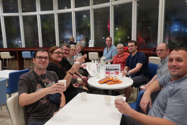 Nach zwei Tagen mit Programm nun etwas wohlverdiente Freizeit: Ein ruhiger Spaziergang im städtischen Urwald, ein Besuch im chinesischen Garten oder ein erholsames Bad im Onsen sind nur ein paar Vorschläge für diesen freien Tag, der allen die Möglichkeit gibt, zu entspannen. Am Abend feiern wir unseren Abschied von Okinawa noch einmal mit Awamori in der Lobby.