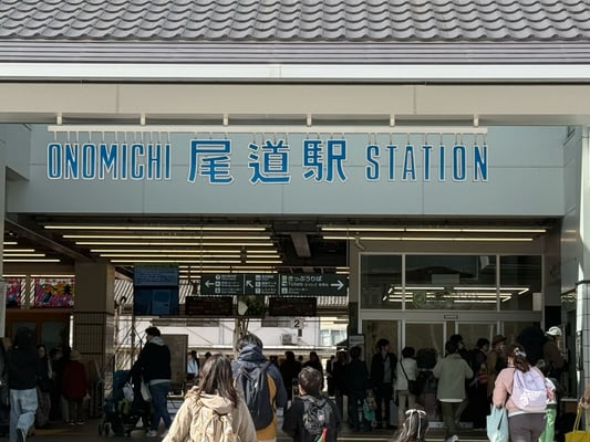 Nachdem wir uns um 8 Uhr vor dem Hotel getroffen haben und zum Bahnhof Hiroshima gegangen sind, fahren wir mit dem Zug nach Itosaki. Hier steigen wir auf dem Nachbargleis in den nächsten Zug, um in Onomichi ein Stop-over zu machen.