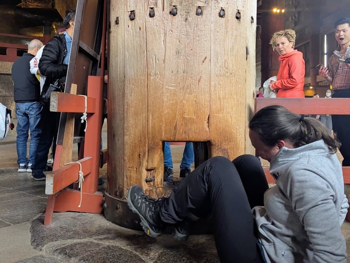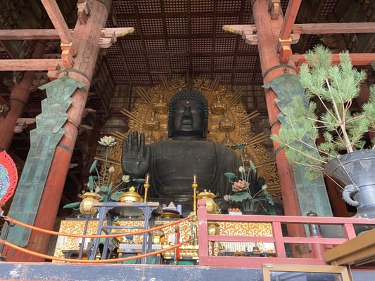 Weiter geht es zum Todaiji Tempel. Er ist riesig und atemberaubend und zieht die Besucher wie ein Magnet an. Der 16,2 m große Budda, der inmitten von dem Tempel sitzt, verkörpert die absolute Erleuchtung und strahlt Ruhe und Harmonie aus.