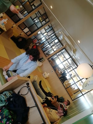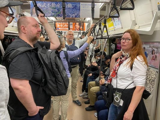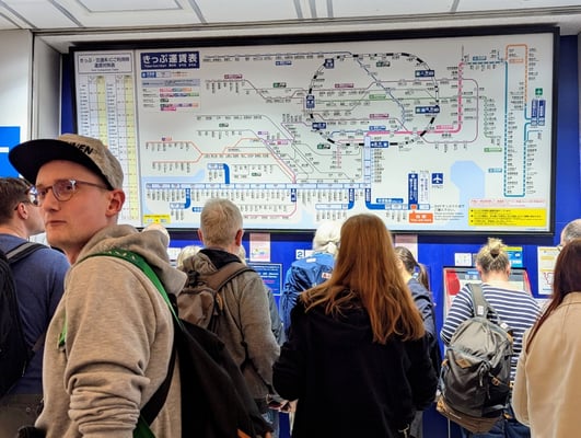 Nach der Landung gab es ein individuelles Mittagessen. Danach ging es zu Fuß weiter zu unserem Hotel. Als wir/ Mirjam Check-in hinter sich gebracht hatte, ging es in die Stadt. Leider wurden wir zu kollektivem Schwarzfahren gezwungen und begingen somit offiziell unsere erste Straftat in Japan.