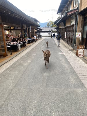 Nach einer kurzen Überfahrt erreichten wir die Insel Miyajima – eine der drei schönsten Landschaften Japans. Schon beim Anlegen begrüßten uns die zutraulichen Hirsche, die sich frei auf der Insel bewegen und neugierig auf Besucher zugehen.
