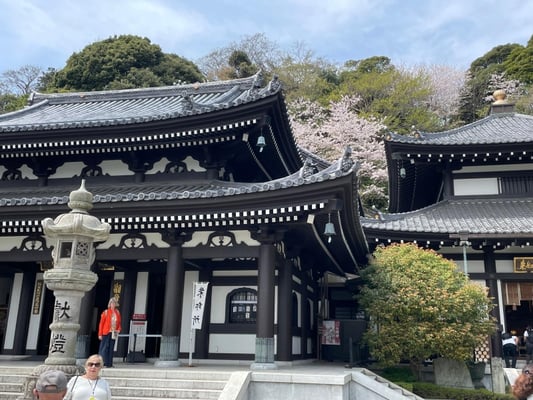 Der Morgen begann mit einer kurzen Zugfahrt aus dem Trubel Tokios hinaus – Richtung Kamakura. Kaum eine Stunde später empfing uns eine andere Welt: ruhiger, grüner, durchzogen von kleinen Straßen und alten Tempeln. Die Kirschblüten standen noch in voller Blüte, ein letzter Hauch des Frühlings, bevor der Sommer sich ankündigt.