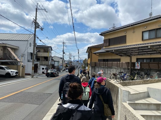 Um auf der Fahrt nach Kyoto einen Sitzplatz zu ergattern, sind wir zunächst in die Gegenrichtung zur Anfangsstation der Linie gefahren. Alle haben einen Sitzplatz gefunden und wir fuhren bis Kyoto Karasuma. Weiter ging es mit der Metro und anschließend einem Bus zum Silbernen Tempel.
