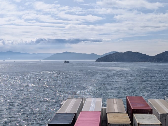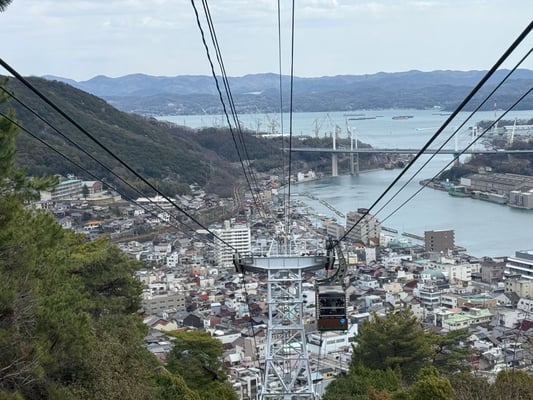 Am Bahnhof in Onomichi wieder angekommen, nehmen wir unser Reisegepäck wieder auf und wir fahren etwa eine Stunde mit dem Zug nach Okayama. Nach kurzem Aufenthalt in Okayama fahren wir nochmal etwa eine Stunde mit dem Zug nach Takamatsu. Dabei überqueren wir die 13,1 Kilometer lange doppelgeschossige Seto Ohashi Bridge mit einem tollen Blick auf die kleineren Inseln.