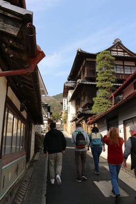 gestaltete sich etwas schwierig. Wir liefen nahezu die ganze Strecke im Gänsemarsch mit tausenden anderen Menschen. Dennoch schafften wir es unterwegs einige Souvenirs zu kaufen. Glücklich und zufrieden kamen wir am Abend wieder in Juso an und beendeten den Tag mit einem leckeren japanischen Abendessen in einem gemütlichen Restaurant direkt gegenüber unserem Hotel.