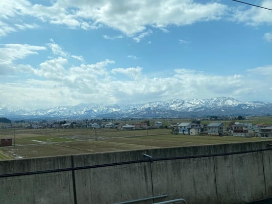Nach rasanter Fahrt, umsteigen in Tsuruga in den Shinkansen „Hakutaka 562“ ohne Platzreservierung. Aber der Zug ist noch leer und wir haben „Platz zum Liegen“. Die Beinfreiheit…einfach phänomenal. Wir rasen an Bergen und Meer, Städten, Reisfeldern und Obstplantagen vorbei, durch Tunnel und über Brücken. Ankunft in Nagano pünktlich um 13:21. Umsteigen gleich in den Zug gegenüber. Jeder findet wieder einen Platz für die nur 10 Minuten dauernde Fahrt.