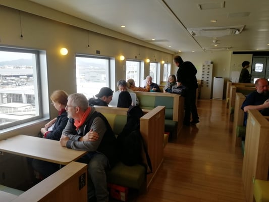 Am letzten vollen Tag in Takamatsu haben wir uns erstmal mit allerlei Leckereien für ein Picknick eingedeckt und sind dann 9:20 Richtung Hafen zum heutigen Treffpunkt gelaufen.
