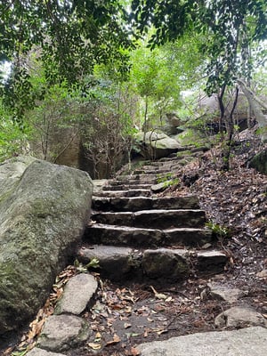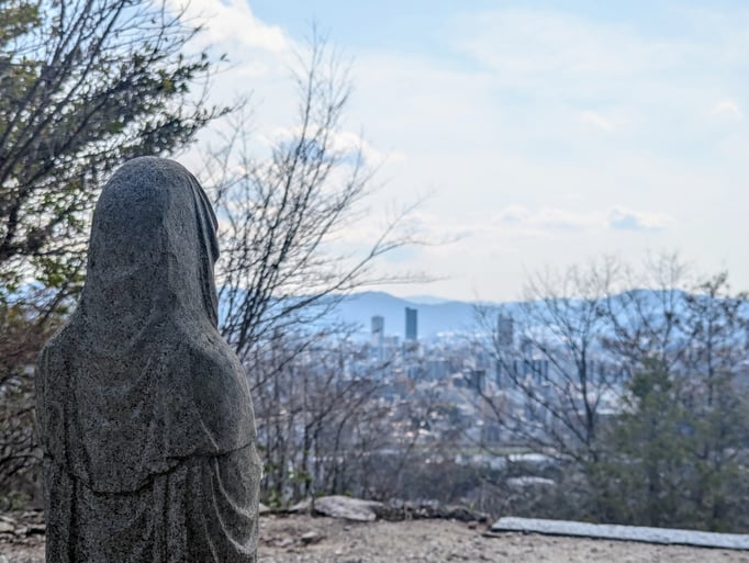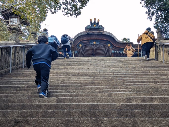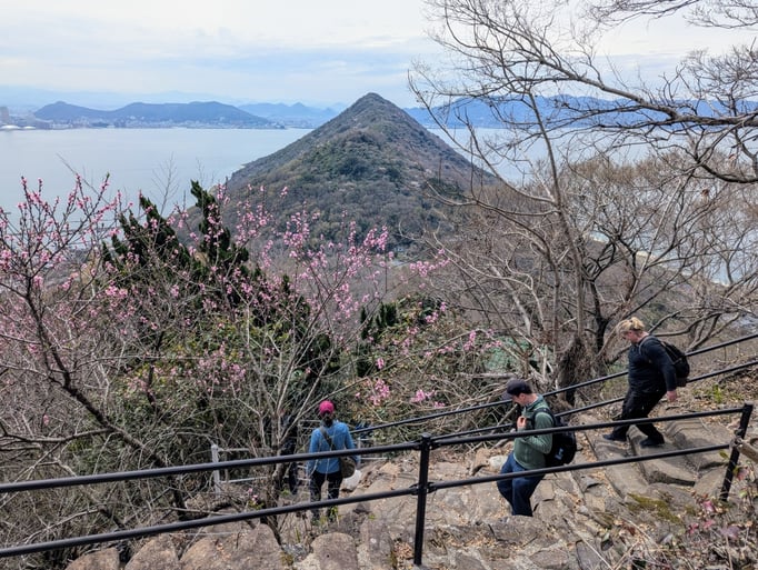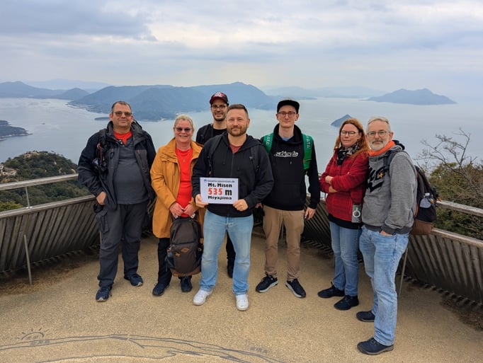Danach hatten wir die Wahl: den Gipfel des Berges Misen mit der Seilbahn erreichen oder ihn über mehr als 2.000 steinerne Stufen zu Fuß erklimmen. Ich entschied mich für die Wanderung – eine anstrengende, aber schöne Herausforderung. Oben angekommen, wurde ich mit einer atemberaubenden Aussicht belohnt.