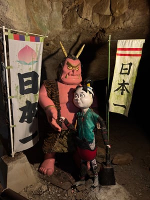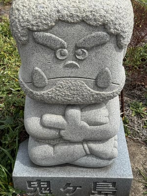 Mit der Fähre ging es dann eine Station zur Insel Megijima, auf der ein Teil der bekannten Legende von „Momotarō“ gespielt haben soll. Der „Junge aus dem Pfirsich“ hat auf dieser Insel gegen die dort lebenden Oger gekämpft, weshalb die Insel auch „Onigashima“ heißt.