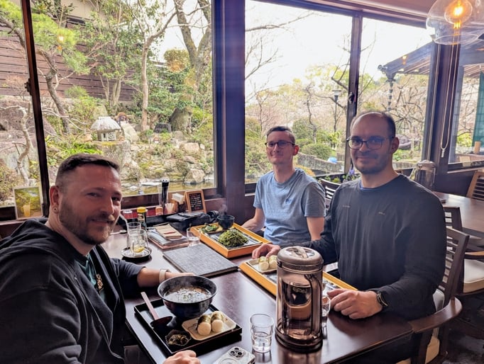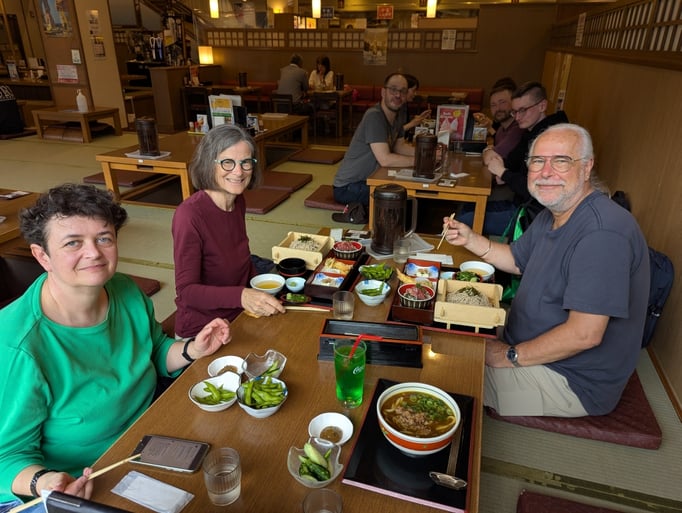 Einige folgten kurzerhand dem Vorschlag von Mirjam ein traditionelles Onsenbad zu besuchen. So brachte uns die Tram sicher zur Zielhaltestelle. Nach einem kurzen Fußmarsch erreichten wir die Bäderoase. Nach dem ausgiebigen Testen aller Becken trafen wir uns anschließend am Mittagstisch wieder.
