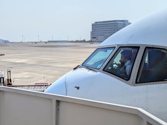 Am Flughafen schnell das Gepäck abgegeben und eingecheckt. Der Flug war kurz und Mt. Fuji war leider auf der falschen Seite. Nachdem wir die Koffer vom Band geholt hatten, hieß es am Shuttle Bus nach Hiroshima anstehen. Alle in einer Reihe.