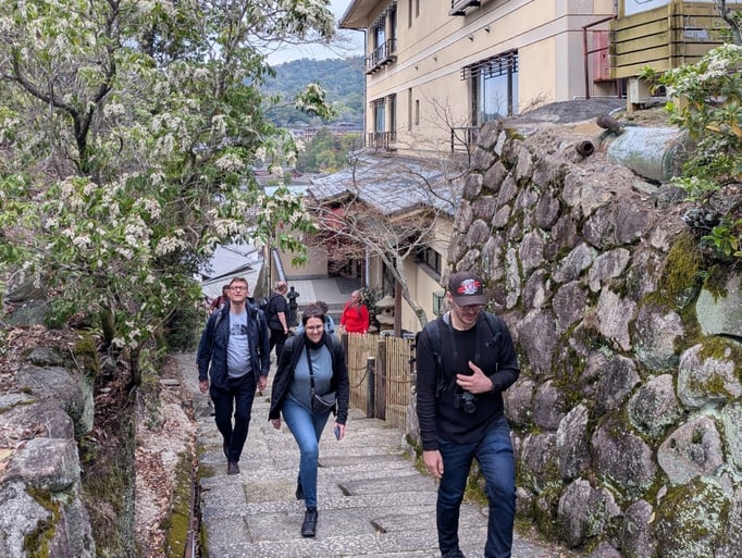 Heute stand unser erster Ausflug nach Kyoto auf dem Programm. Mit Schnellzug, U-Bahn und Bus machten wir uns auf den Weg – eine Fahrt, die uns wieder einmal ein typisch japanisches Erlebnis bescherte: überfüllte Verkehrsmittel, in denen erstaunlicherweise doch alles reibungslos funktioniert.