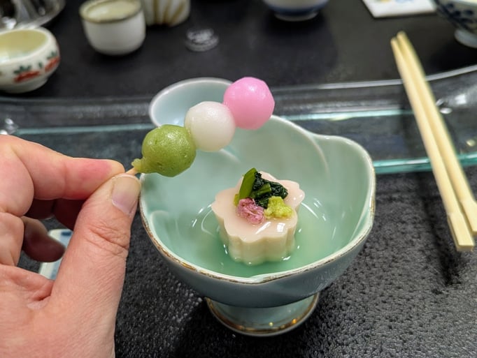 Unser erstes Ziel war der berühmte Goldene Pavillon, der mit seiner strahlenden Fassade über dem Wasser zu schweben scheint. Nach einem kurzen Rundgang gönnten wir uns eine ganz besondere Spezialität: Matcha-Eis mit echtem Goldstaub.