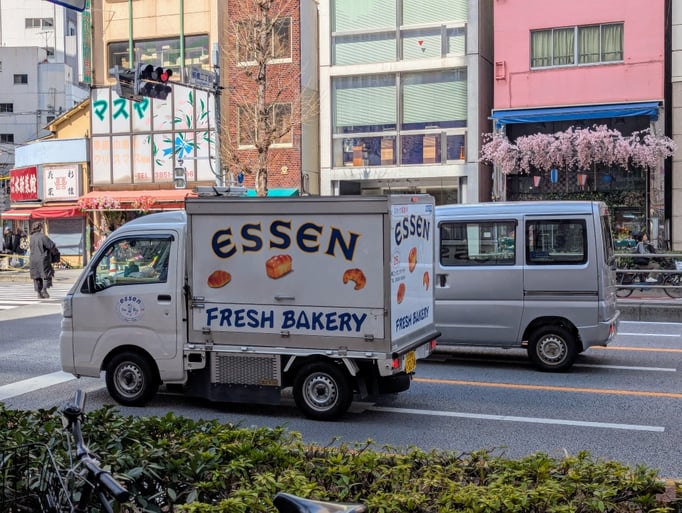 Auf der Fahrt können in der Nähe schneebedeckte Berge und in der Ferne der Fuji erspäht werden. Nach ein bisschen Umgesteige und kurzem Spaziergang werfen wir unser Handgepäck Punkt Mittag in der bekannten Toyoko Inn Lobby ab.