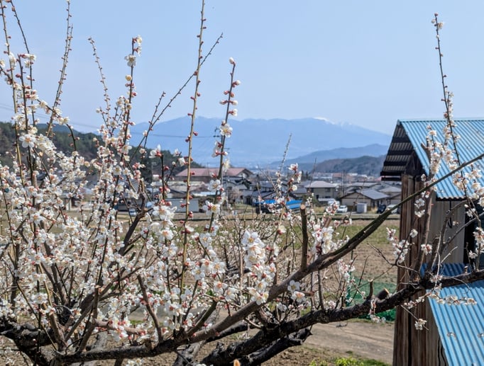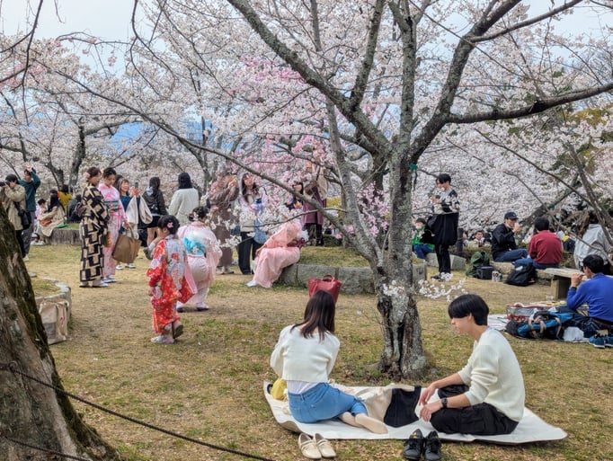 Dann war Mittagszeit und wir hatten unser Picknick auf dem Berg in der Sonne und unter Kirschblüten.