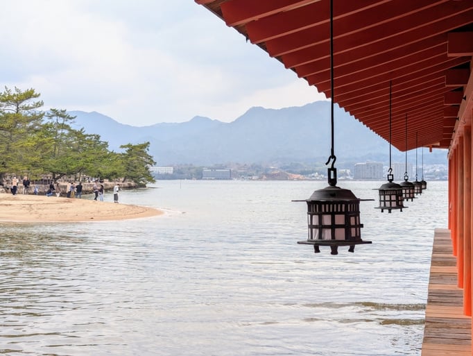 Der erste Fotostopp führte uns zum berühmten O-Torii-Tor, das majestätisch im Wasser steht. Anschließend besichtigten wir den beeindruckenden Itsukushima-Schrein, dessen rote Holzkonstruktionen sich vom Grün der umliegenden Natur abheben. Von dort ging es auf einem idyllischen Pfad weiter zum Daishoin-Tempel, wo wir eine ausgiebige Mittagspause einlegten und das Tempelgelände in aller Ruhe erkunden konnten.