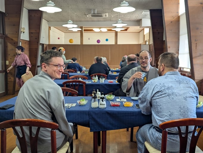 Nach kurzer Erholungspause versammelten wir uns im Shuttlebus um hinunter in den Ort zu fahren. Hier konnten wir uns im Supermarkt mit Essen, Trinken und Snacks eindecken. Die meisten von uns verbrachten einen entspannten Nachmittag im Onsen Bad.